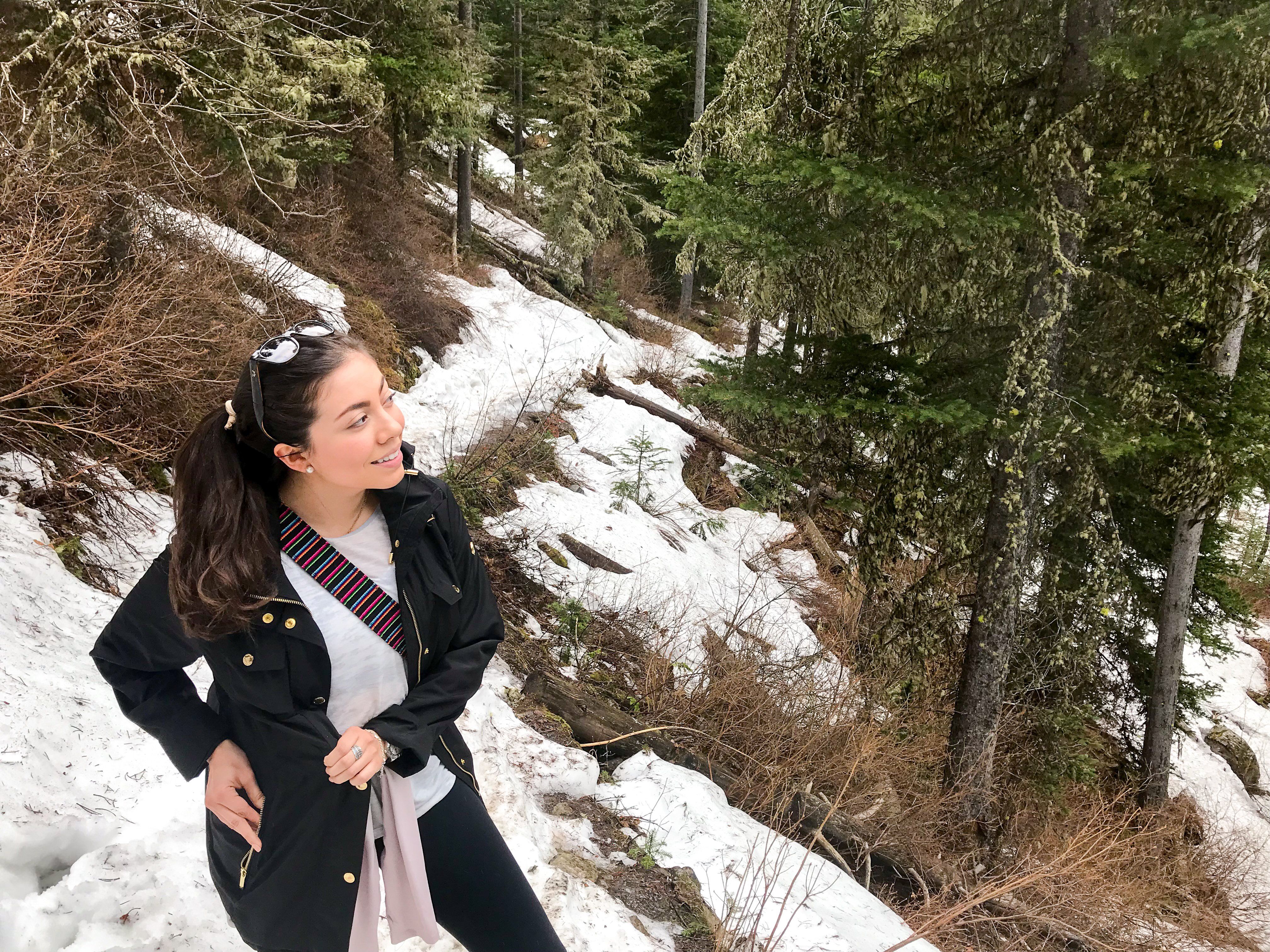 The trail leading up to the lake—also called Cascade Creek trail—gains about 1600 feet in elevation and the hike is 5.5 miles round trip. It was definitely a rainy (and slippery) experience in the springtime, but the views of Cascade Creek and the waterfalls along the way were still beautiful.